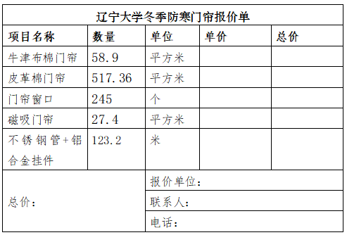 项目名称:辽宁大学冬季防寒门帘制作采购项目